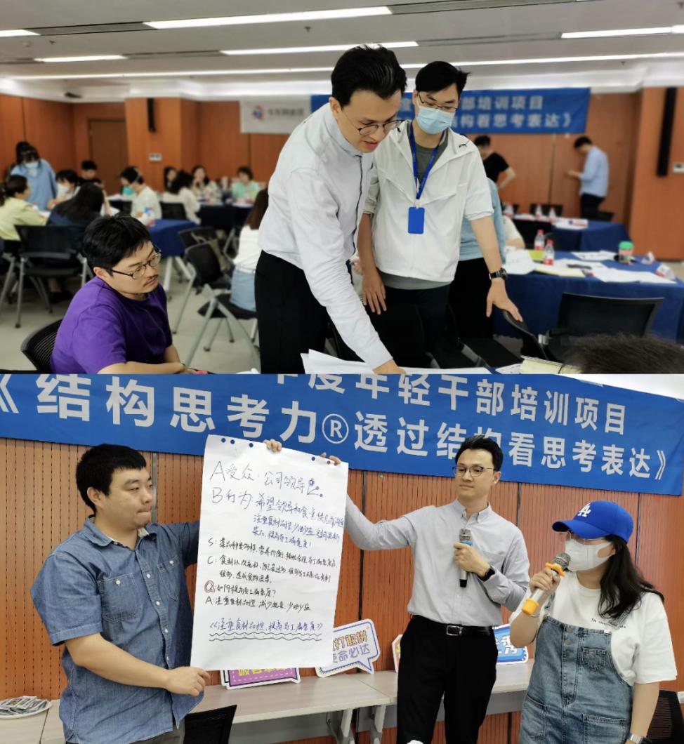 来到现场的青年干部们热情、活泼,具有较高的理解和应用能力,运用课程中的原则逻辑和方法,一步一练完成了从0-1、从模糊想法到完整文案结构的搭建,让表达汇报的思路逐渐清晰起来,不仅掌握了结构化的通用表达搭建方法论,还解决了真正面临的汇报、提案难题。